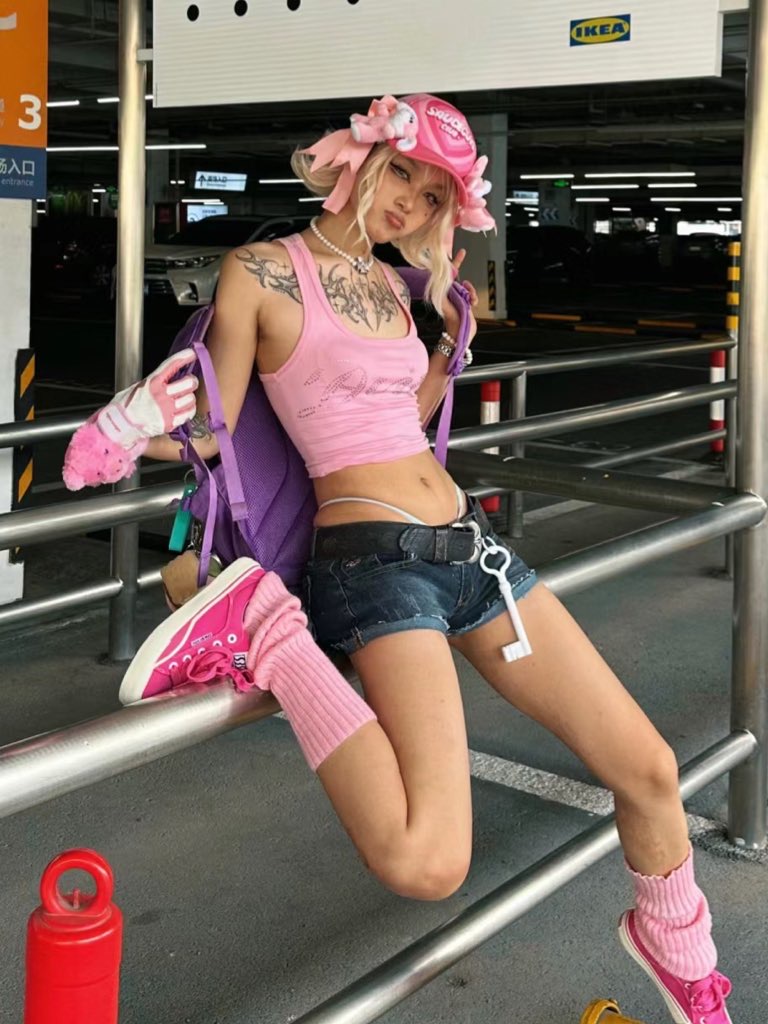 ホットパンツからはむっちりとした尻肉がはみ出ています。これだから夏はたまらないですね〜