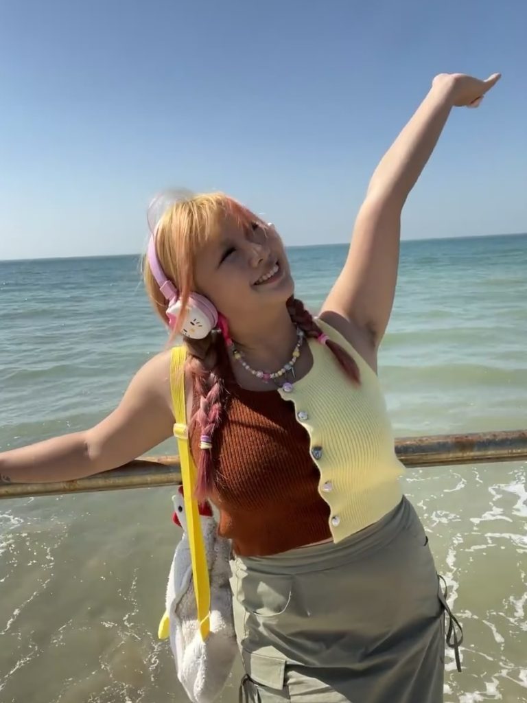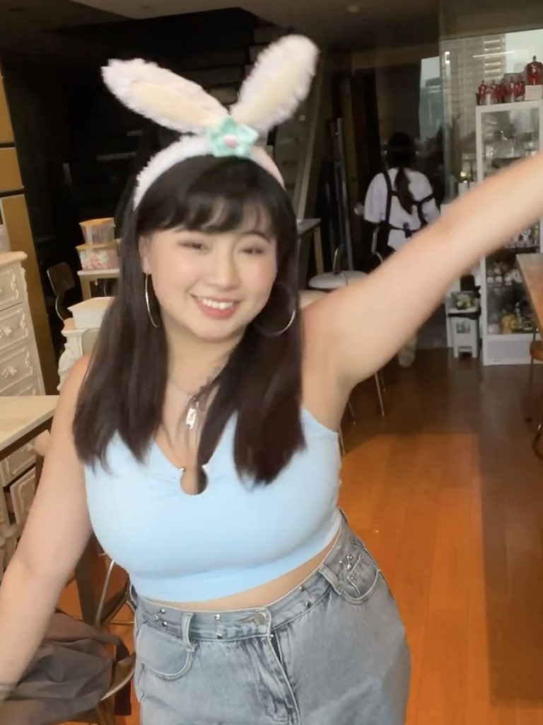 昨日とは違う白いノースリーブワンピ姿で、相変わらず無防備に腋をさらけ出しています。