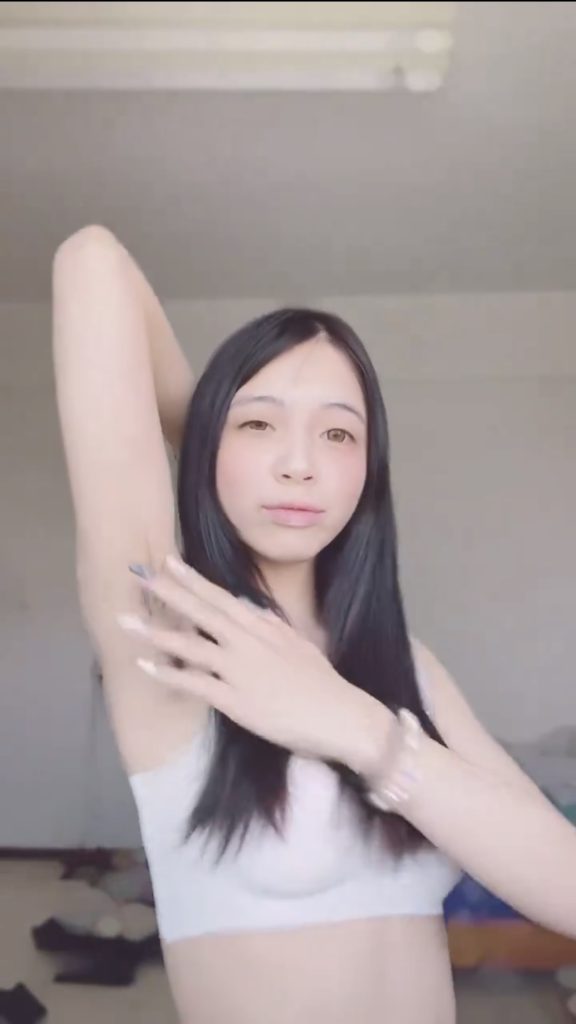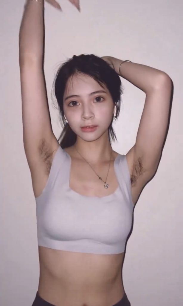 そして目に飛び込んできたのは、くっきりと広がった腋汗染みと、前回よりも更に長さを増したジョリ腋。