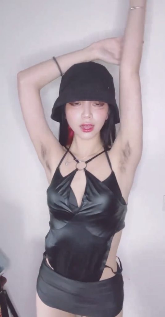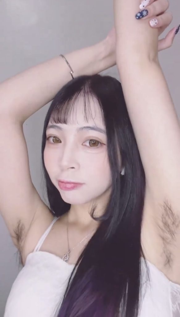 密度の濃さも相まってか、遠目にもはっきりと腋毛が伸びていることが見て取れる長さに成長していました。