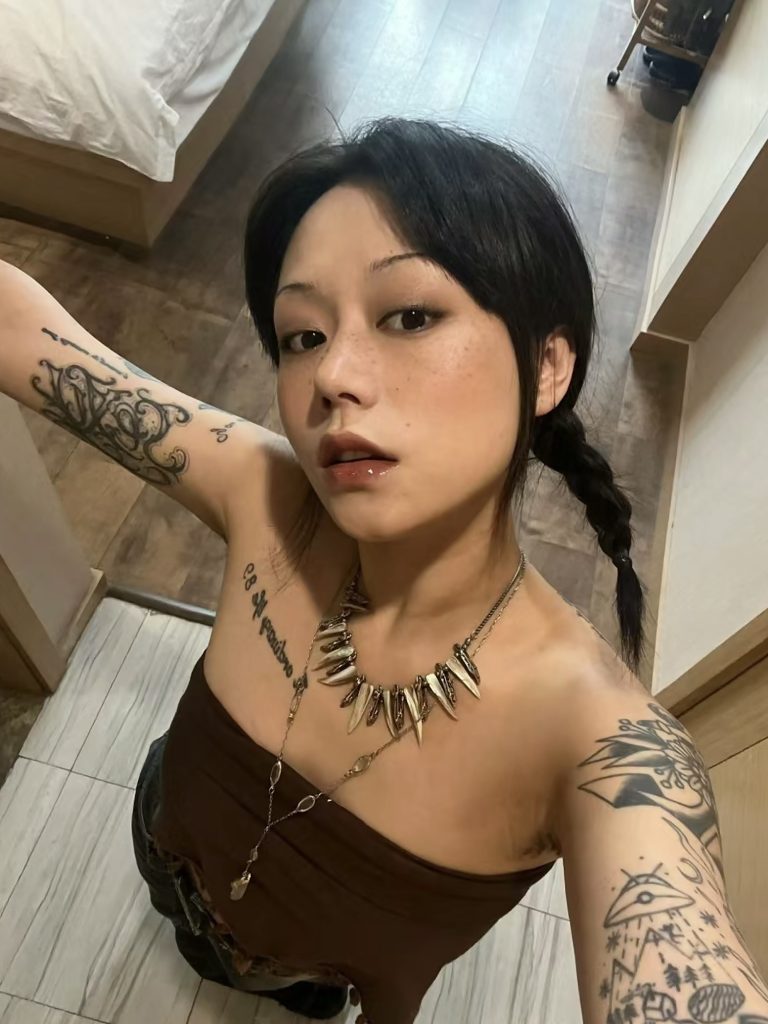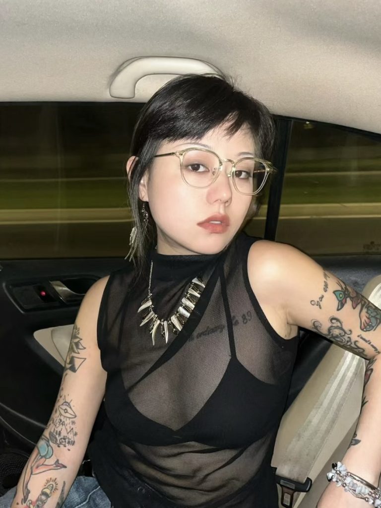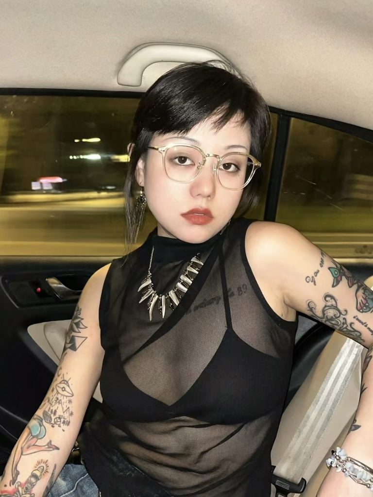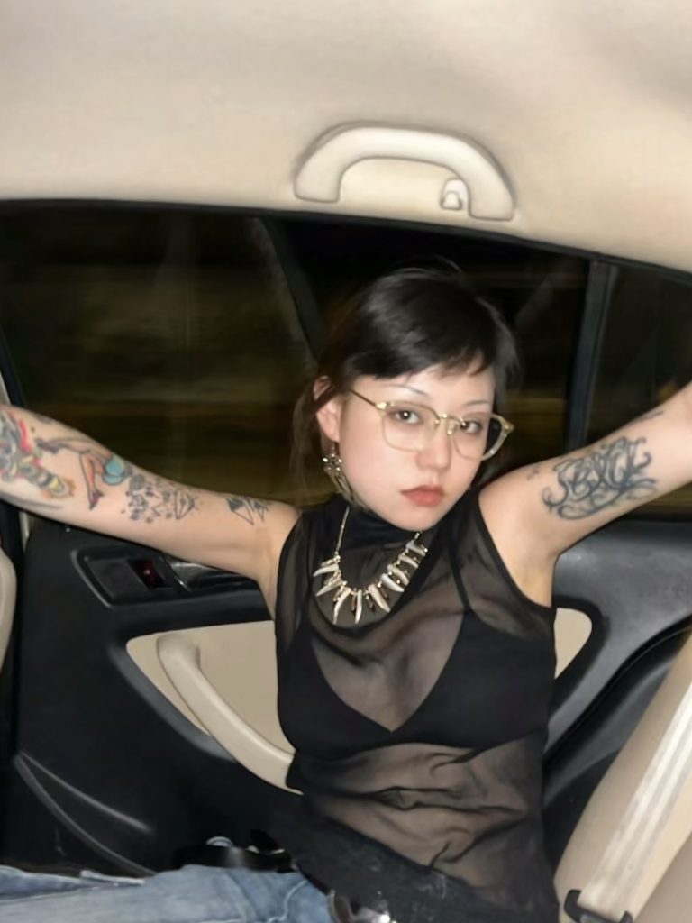 黒リボンをあしらったガーリーなフリル袖のノースリーブ姿の●女が腕を上げると、その可愛らしい雰囲気からはあまりにもギャップの有りすぎる黒々とした腋毛が袖から溢れ出します。