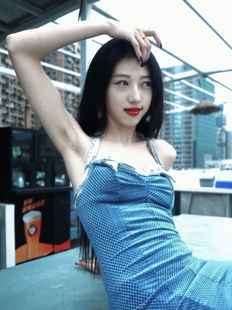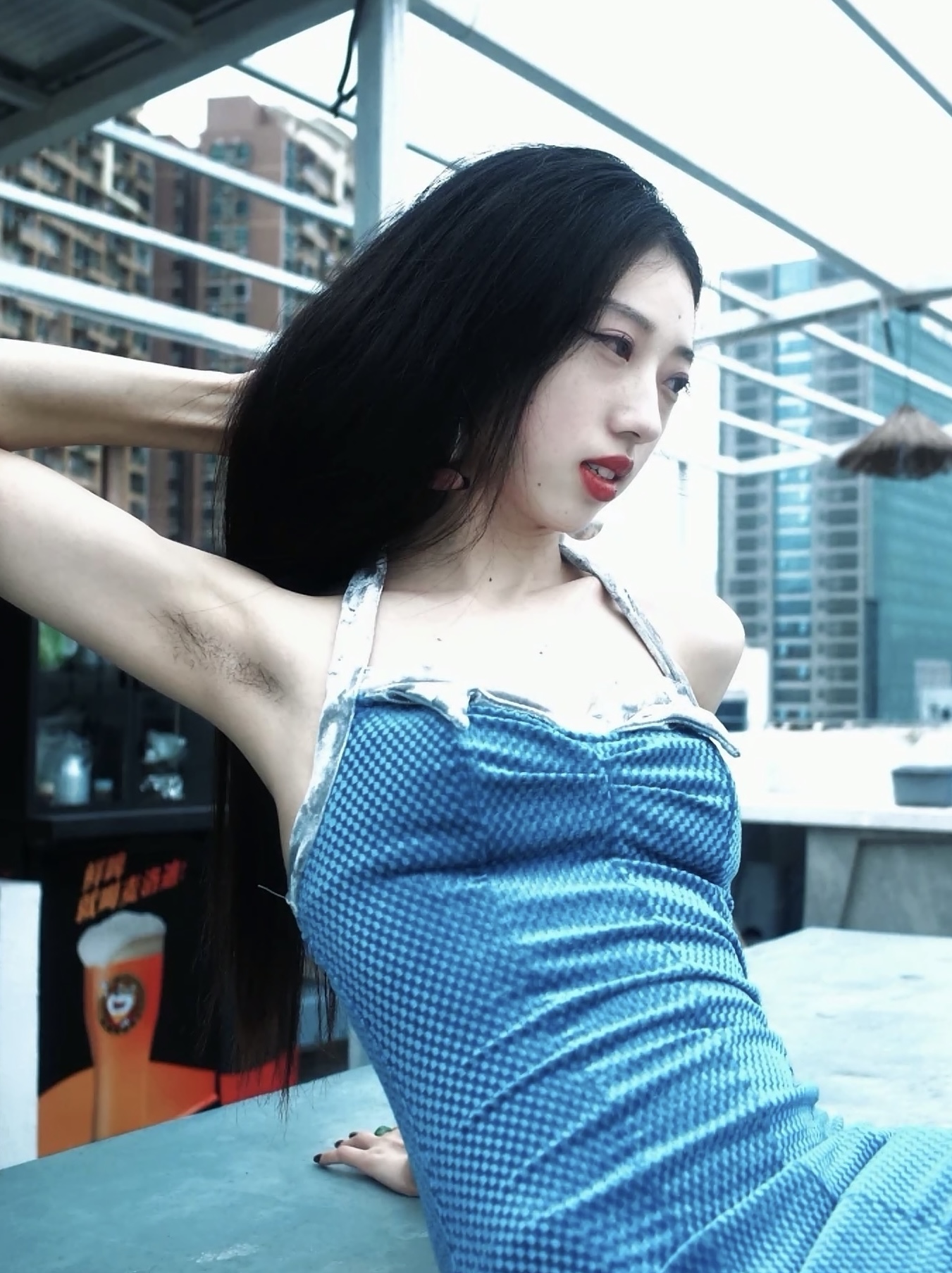 【腋毛超接写】スタイル抜群のロングヘアー美女の油断したチョロチョロ腋毛を上から下から超接写
