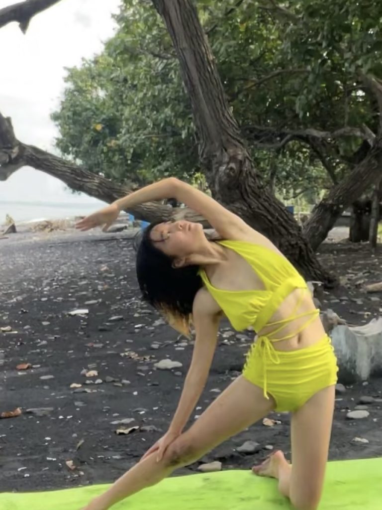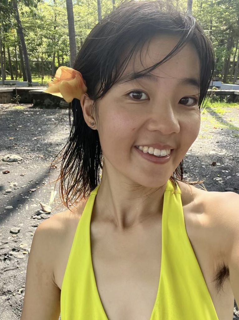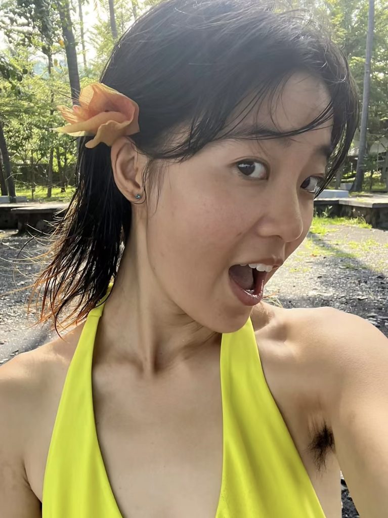 【腋毛】黄色い水着から溢れる腋毛