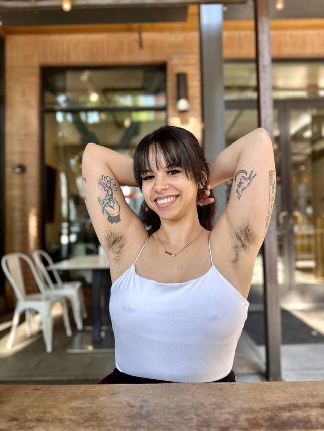 笑顔が素敵‼︎ すね毛も生えてる剛毛腋毛女子